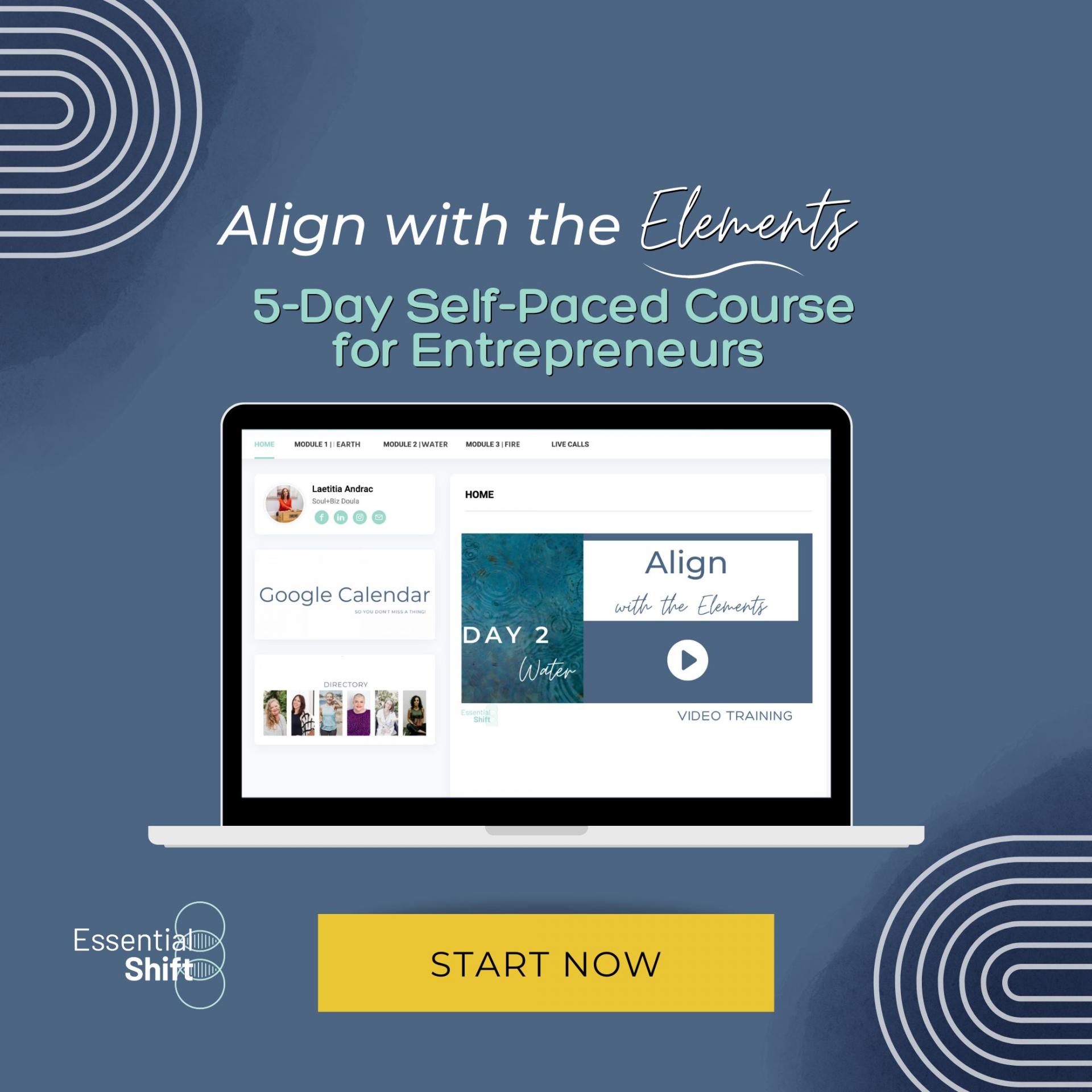 This 5-day self-paced course is a journey back to wholeness and remembering that the same 5 elements are moving in everything in the Universe: your body, your business and all things around you.