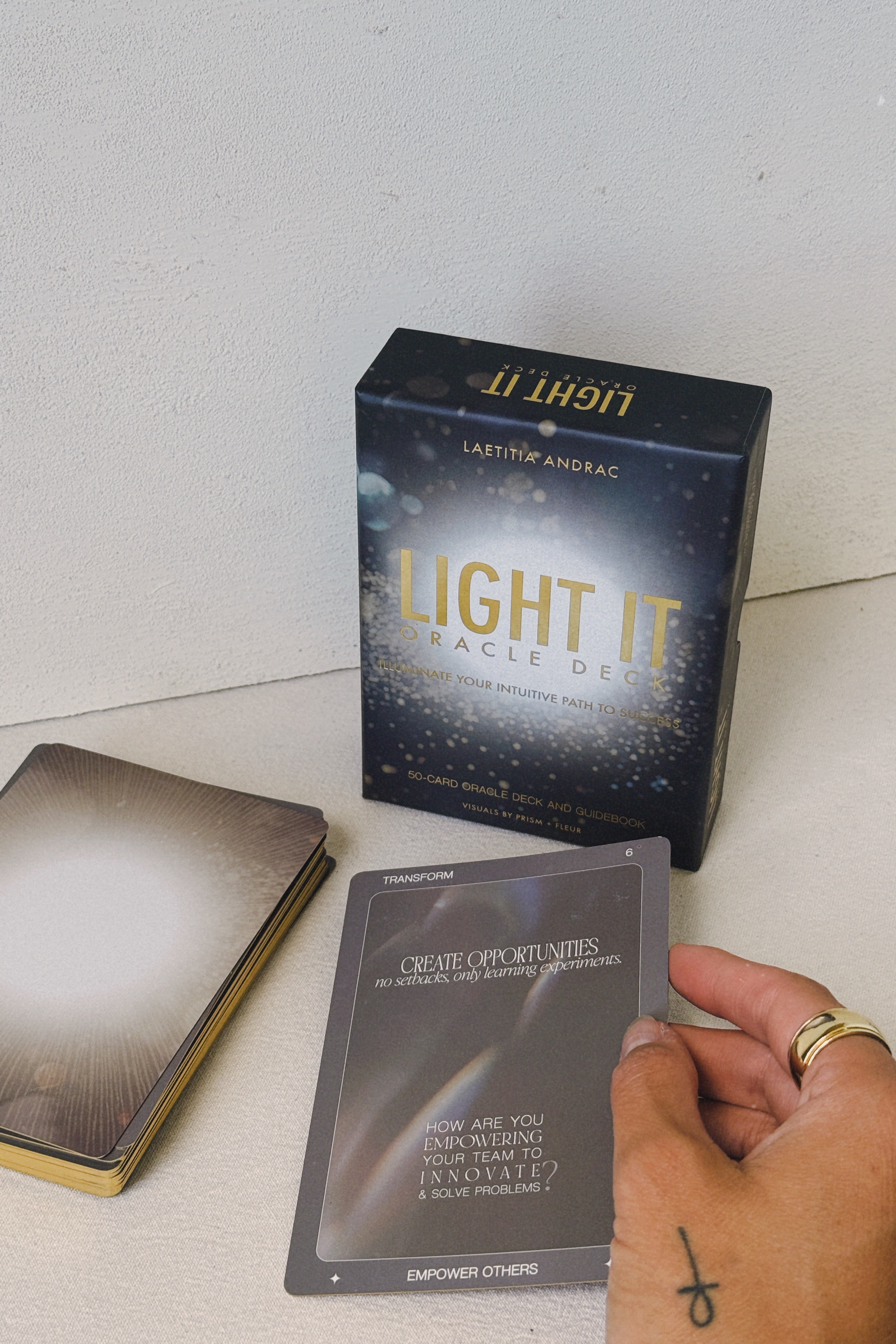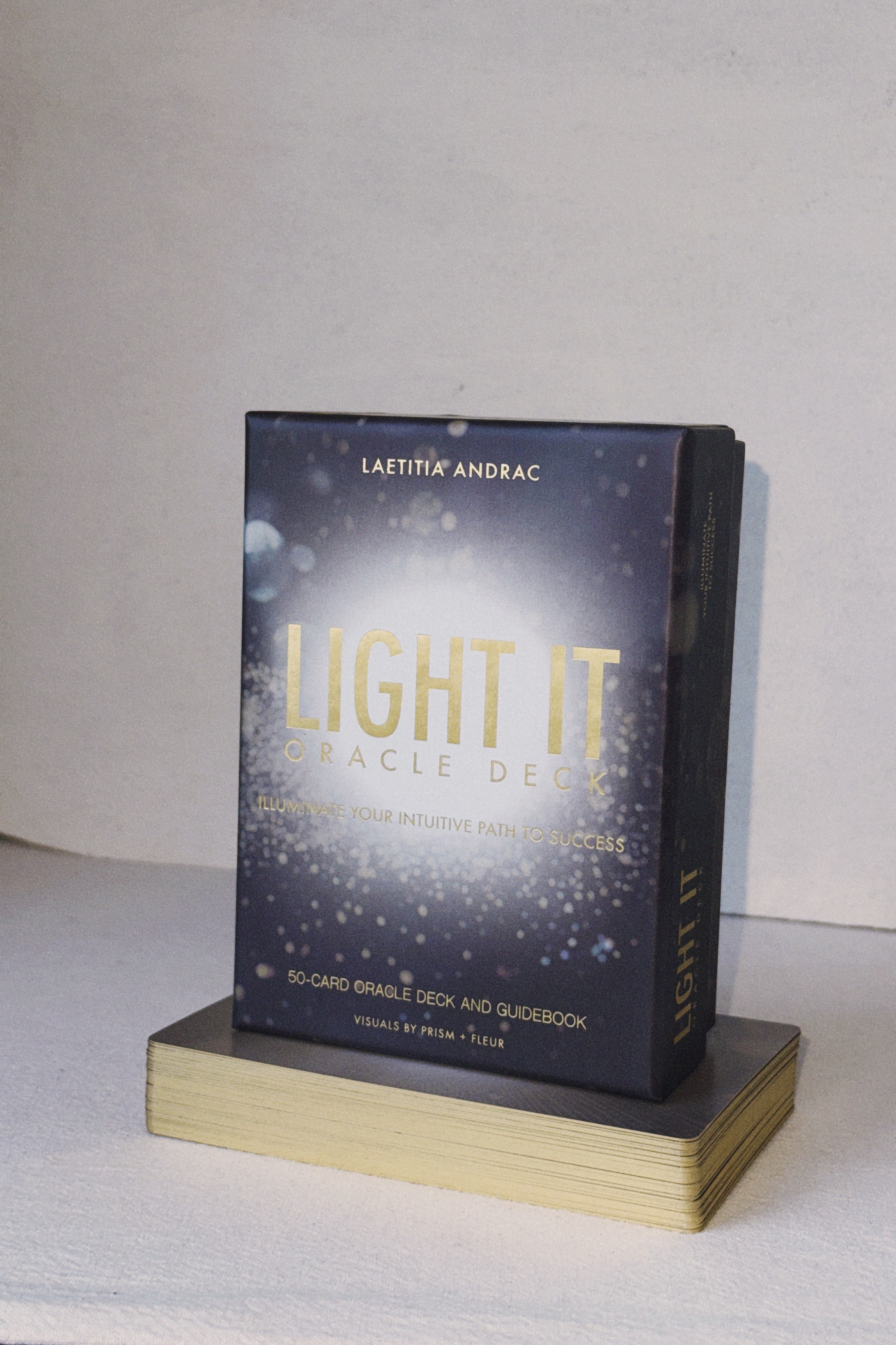 The Light It Oracle Deck is a collaborative creation between Laetitia Andrac and Prism + Fleur. This partnership brings together intuitive business strategy and artistic vision, creating a truly unique tool for entrepreneurs seeking deeper insights and connection.